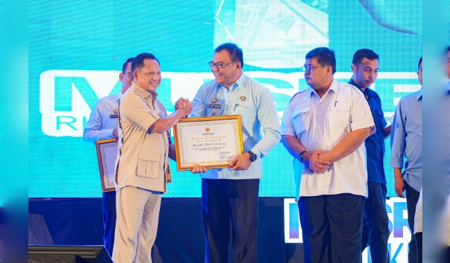 Bupati Deli Serdang menyampaikan terimakasih atas penghargaan yang diterima serta menegaskan komitmen daerah untuk terus memperkuat kolaborasi antardaerah.