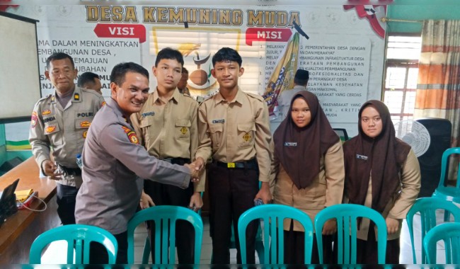Indragiri Hilir |- Dalam upaya mencegah penyalahgunaan narkoba sejak dini, Polsek Kemuning menggelar kegiatan sosialisasi kepada masyarakat dan remaja di Aula Kantor Desa Kemuning Muda, Kecamatan Kemuning, Kabupaten Indragiri Hilir, Kamis (23/4/2026) sekitar pukul 10.00 WIB.