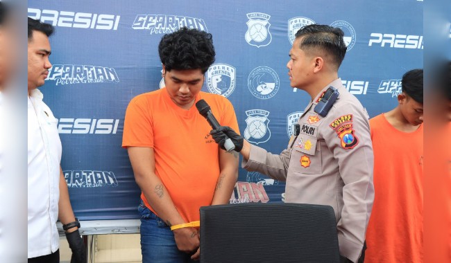 Gresik | Kepolisian Resor (Polres) Gresik melalui Satuan Reserse Kriminal (Satreskrim) berhasil mengungkap dan menetapkan tiga tersangka dalam kasus aksi kekerasan brutal yang dilakukan komplotan gangster ‘kampungan’ di dua lokasi berbeda dalam satu malam. Aksi “sweeping” tersebut menyebabkan korban mengalami luka bacok serta kehilangan sejumlah barang berharga di wilayah Kecamatan Dukun dan Kecamatan Panceng, Kabupaten Gresik.